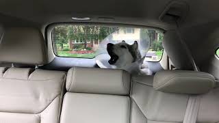 Description: For the record, Zeus is not actually "drunk" he's recovering from being under anesthesia. Zeus the Stubborn Husky had a growth removed from his blue eye on 8/11/2017 and from what the vet's office said, he's been talking and howling all day. Obviously he's protesting the cone of shame and having been at the vet all day! Zeus also howled the whole way home while the anesthesia was wearing off. He came home and rested comfortably on his bed with his brother Kaden by his side. We had to stop the car and drop off something for the rescue we volunteer with which is why the car is stopped. Can't film and drive! Follow Zeus on IG and FB: ZeusTheStubbornHusky for more pics and updates! For Licensing, please contact Licensing@Rumble.com